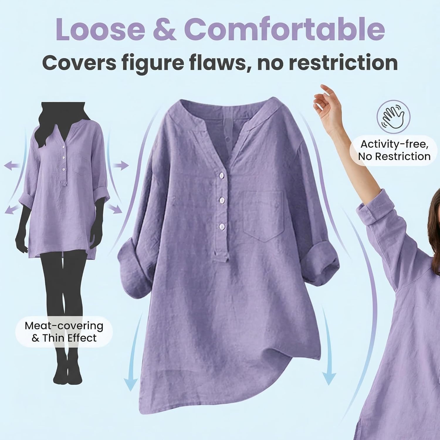 Spring Tops for Women 2025 Dressy 3/4 Sleeve Linen Tops for Women