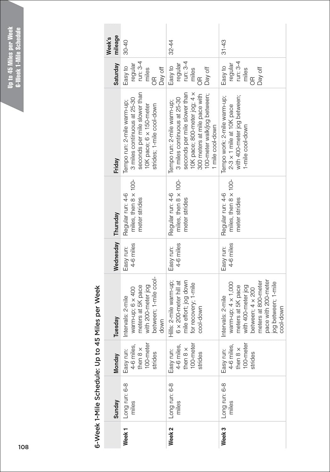 Coogan provides numerous training schedules for the mile, 5K, 10K, half marathon, and marathon as well as schedules for running multiple races in a short period of time. For each distance, choose the length of training (from 6 weeks to 16 weeks) and weekly mileage range. The plans are supplemented with training and racing tips to help you better understand how to apply the concepts to your own running strategy.